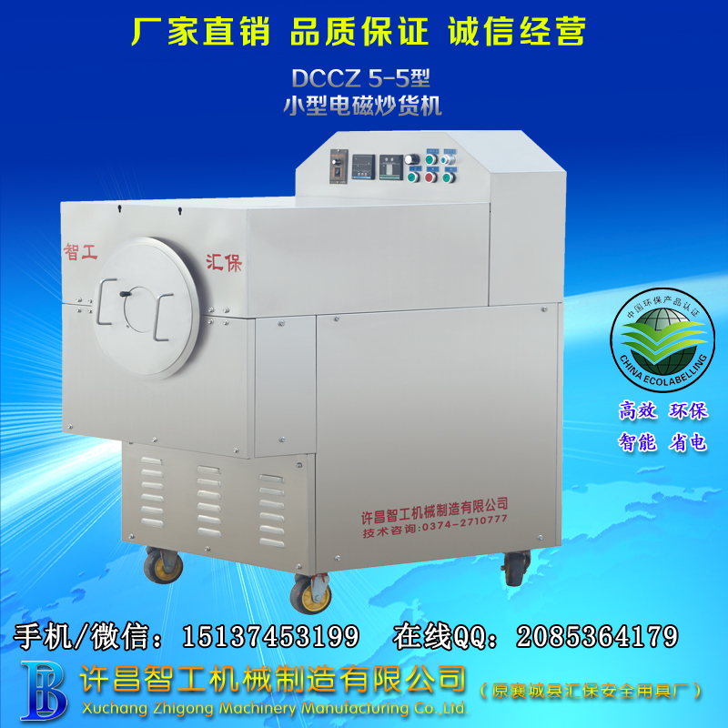 许昌智工电磁炒货机,是一种新型环保的炒炒货设备,它通过添加介质高温烘炒的方式,使每颗炒货受热均匀,炒制出的炒货,松香酥脆,味美可口,色泽一致,利用电磁感应加热,锅体外包裹保温层的方式,热效率高达百分之九十五,比传统电加热设备节电百分之四十五以上,内置智能控温系统,控温精确,解放双手省人工,人性化设计,人机界面操作易懂,上手快,还有故障自诊功能,代码显示,一目了然,机体使用的材质均为食品级不锈钢材质,硬度高,耐腐蚀,易清洁,符合国家标准,是一款成熟理想的炒炒货设备。